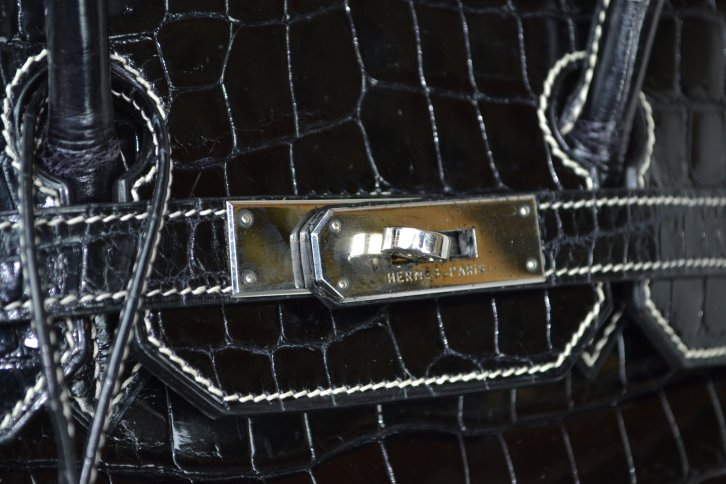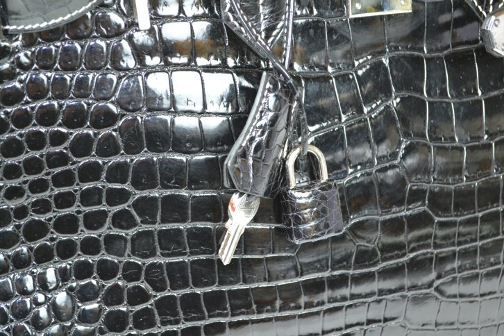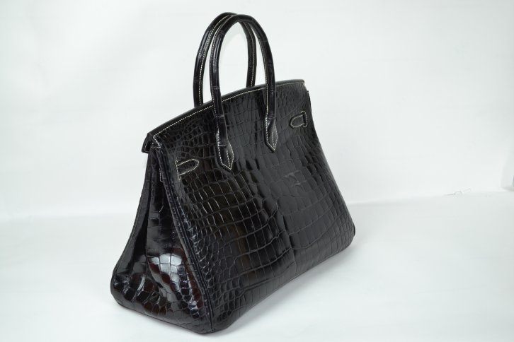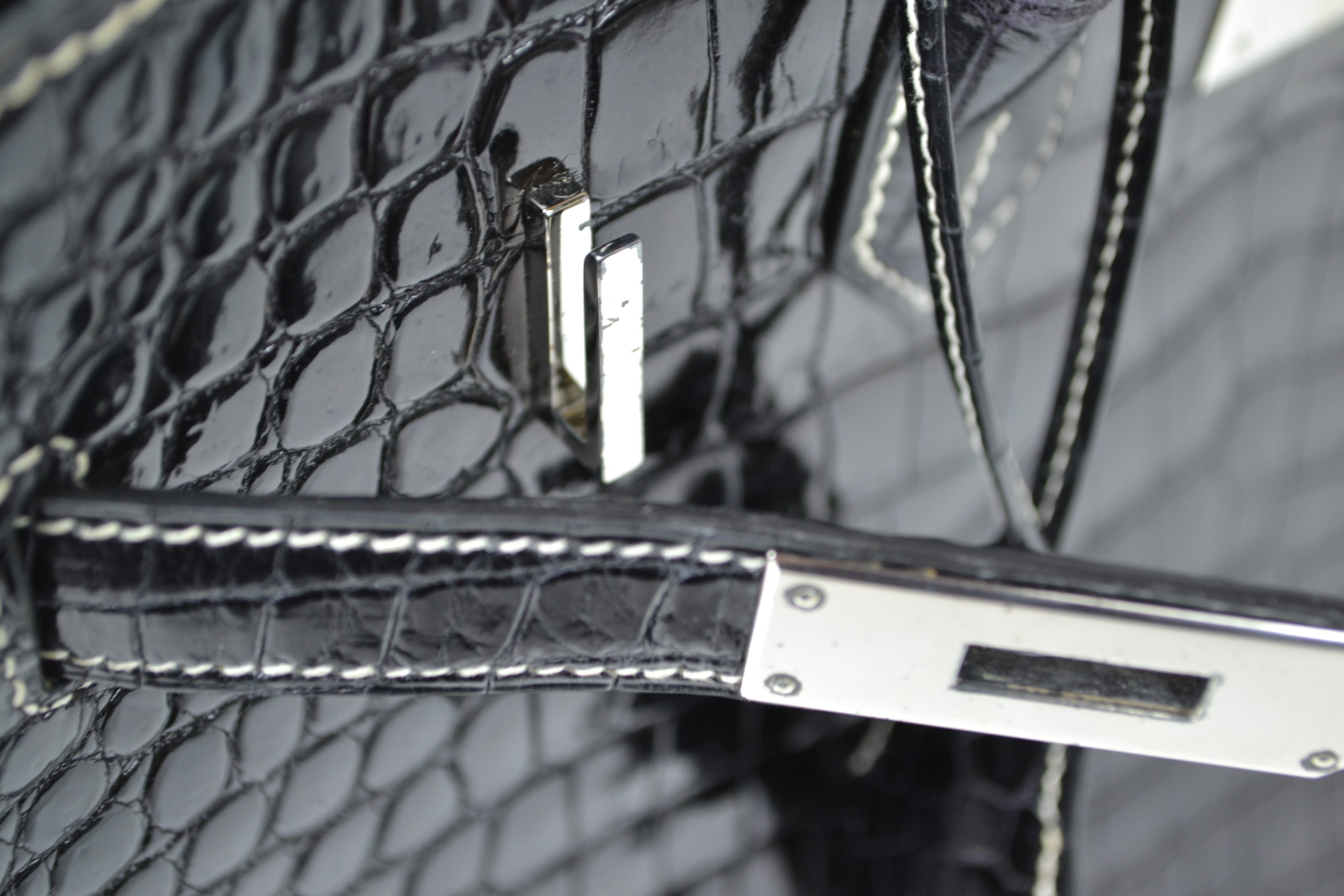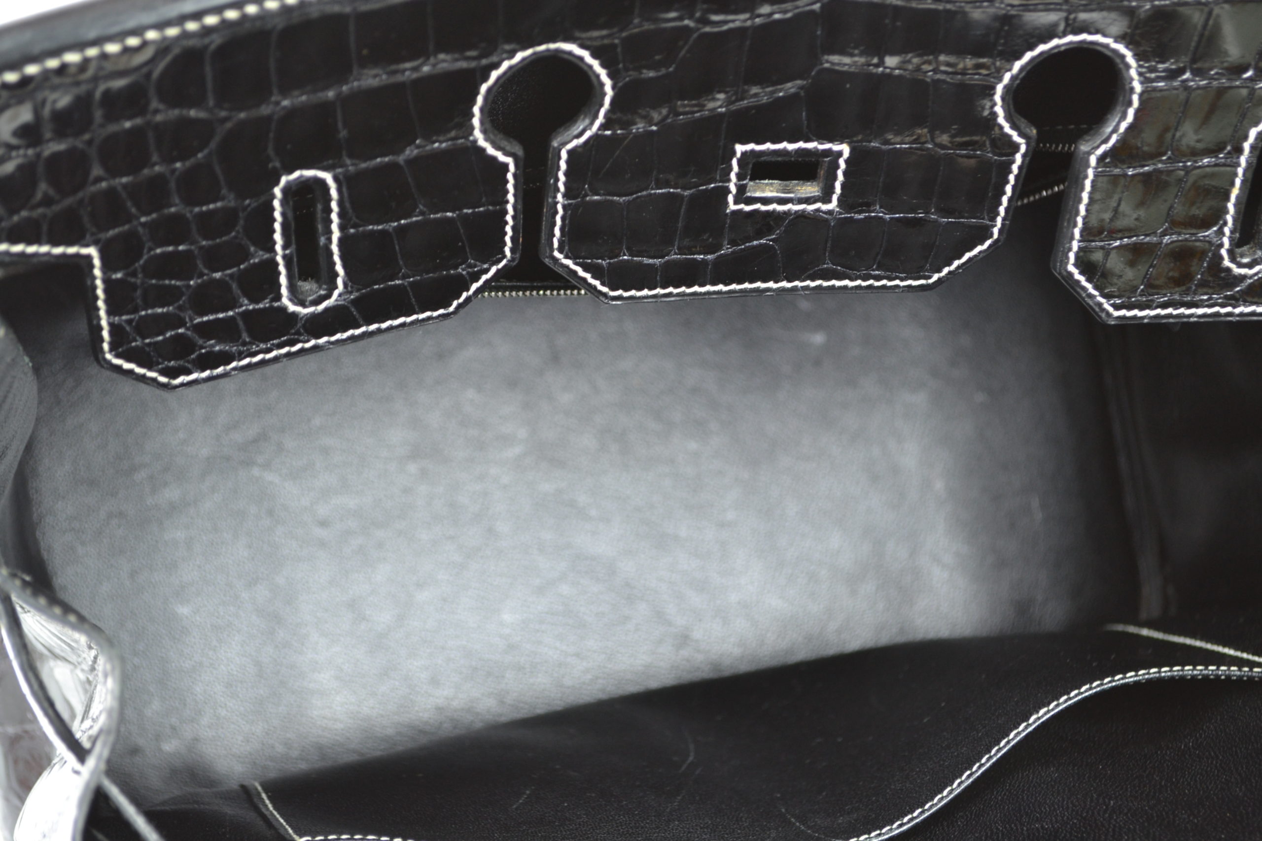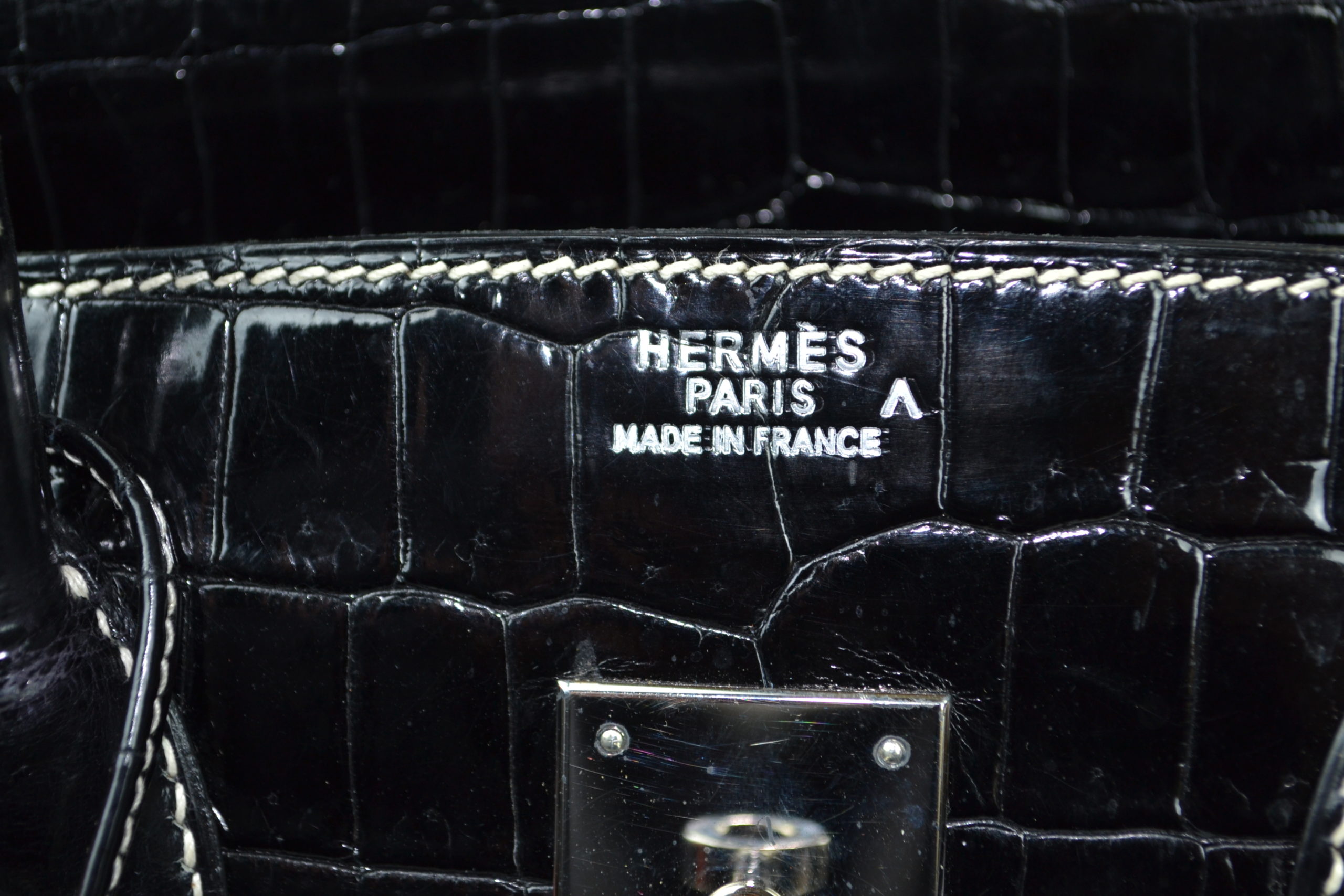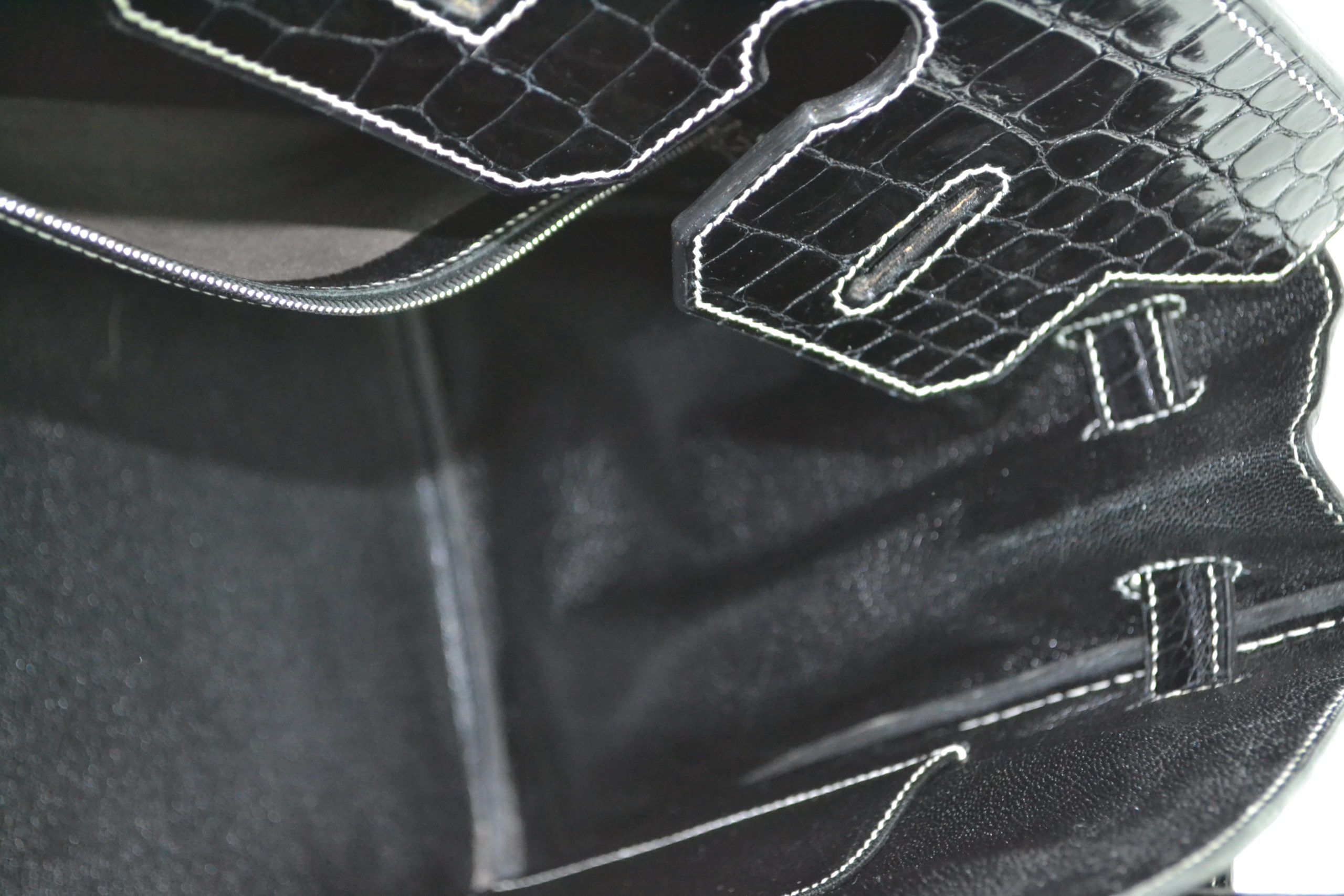Birkin 35 Croco Porosus leather, black colour, palladium hardware, excellent condition