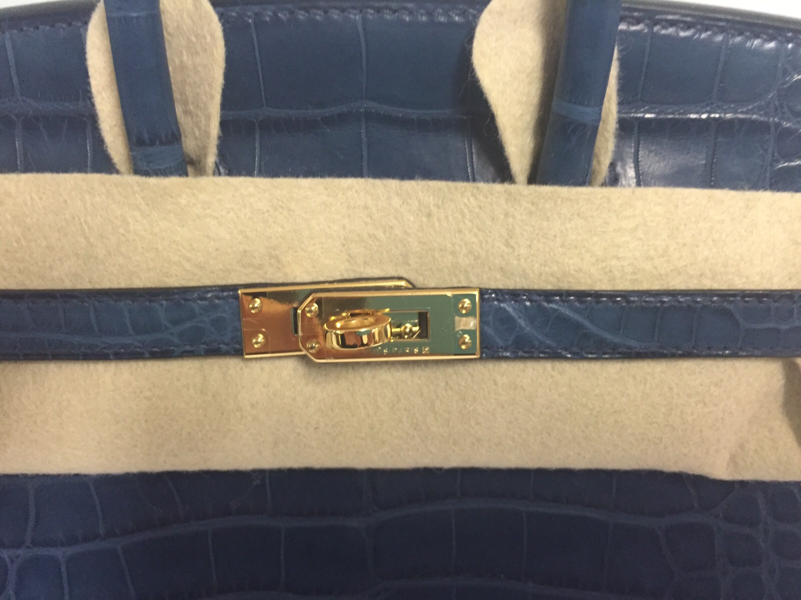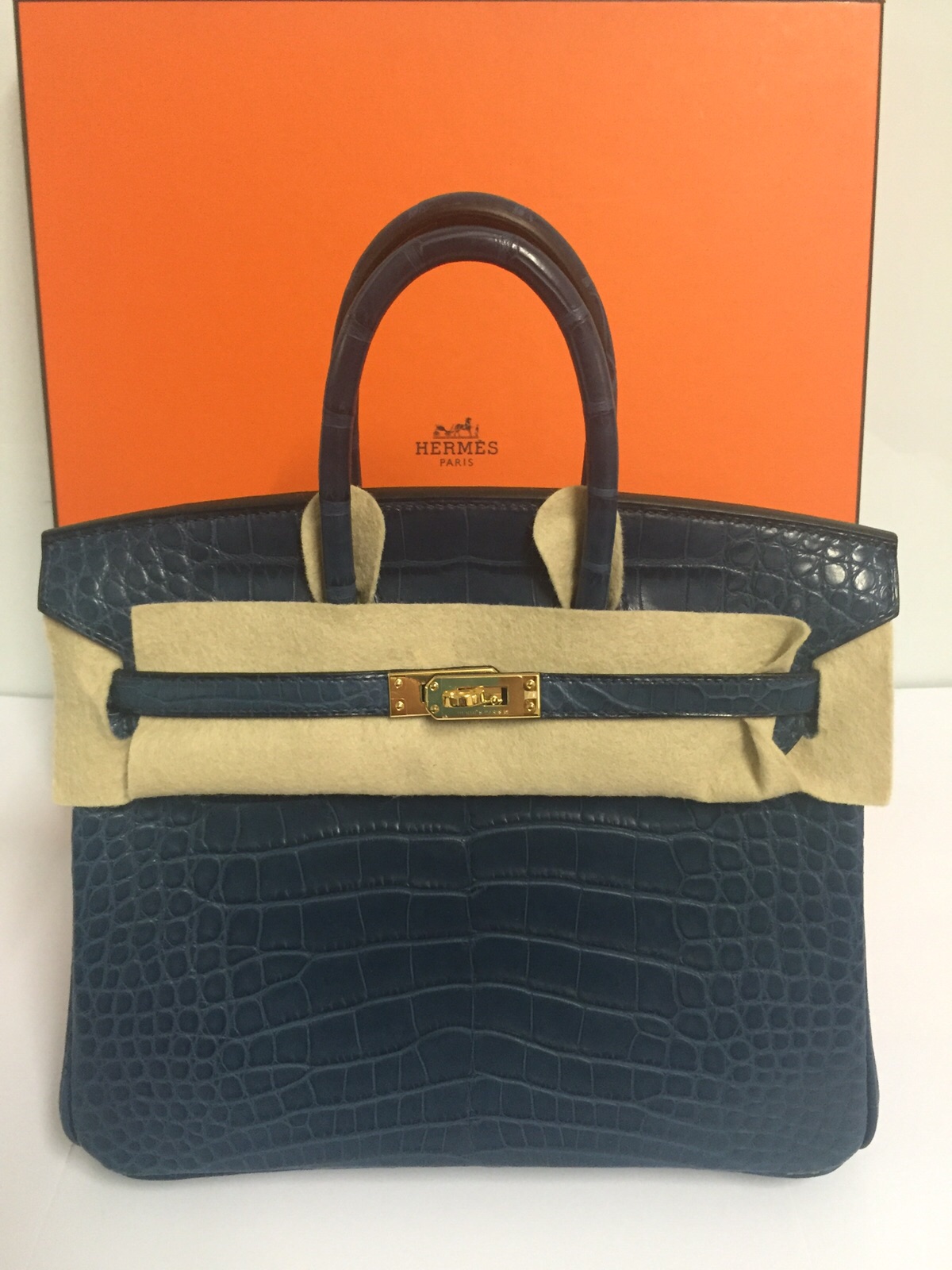New Hermes Birkin 25,Alligator Mississipiensis,Bleu de Malte,Ghw