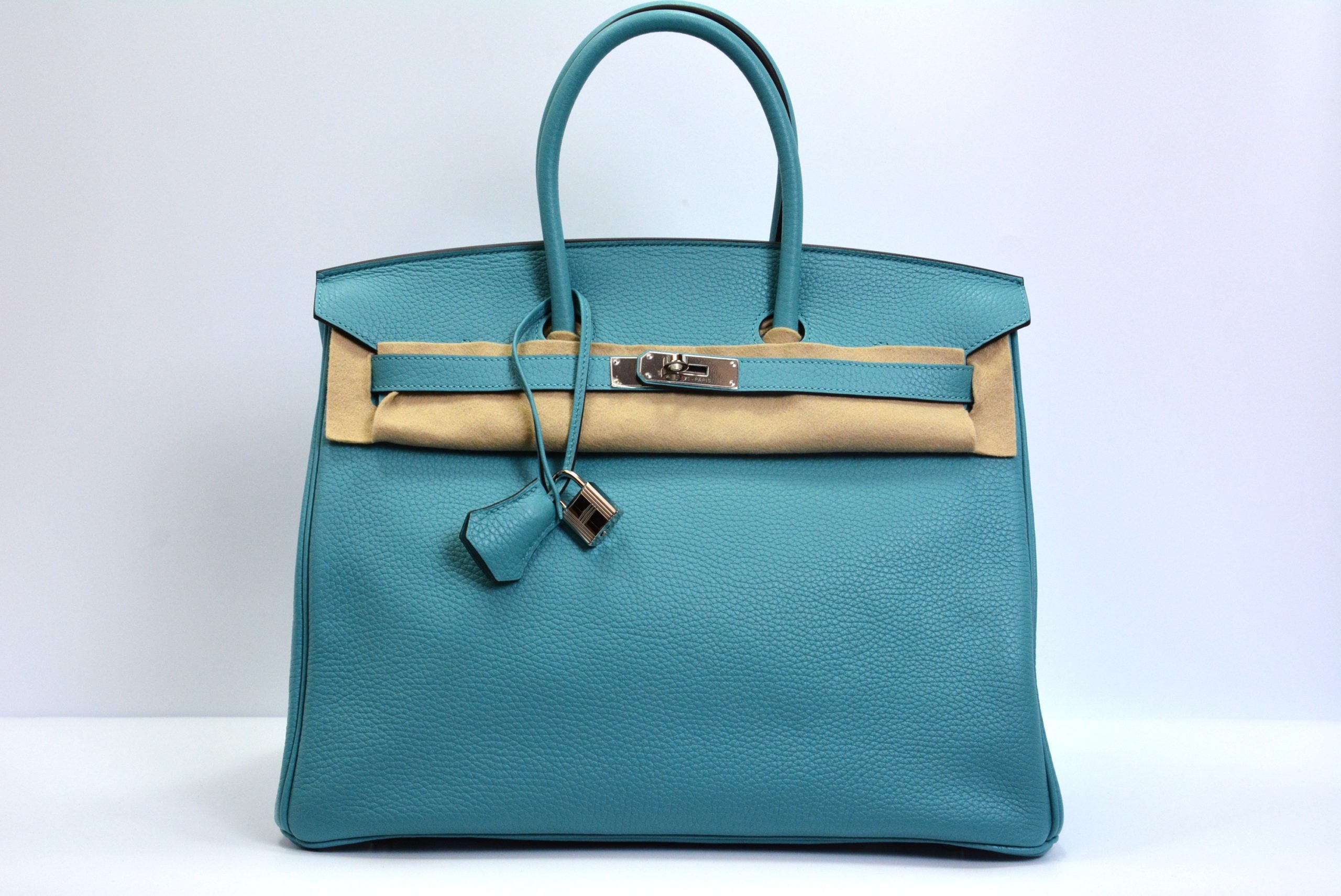Hermes Birkin 35,Clemence Leather,Blue Saint Cyr Color,Phw,Stamp T,Like New