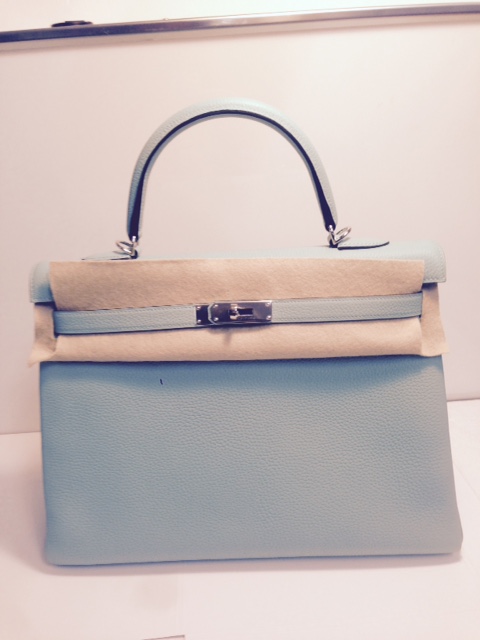 Kelly 35, Togo leather, Blue Atoll colour, palladium hardware, NEW with invoice