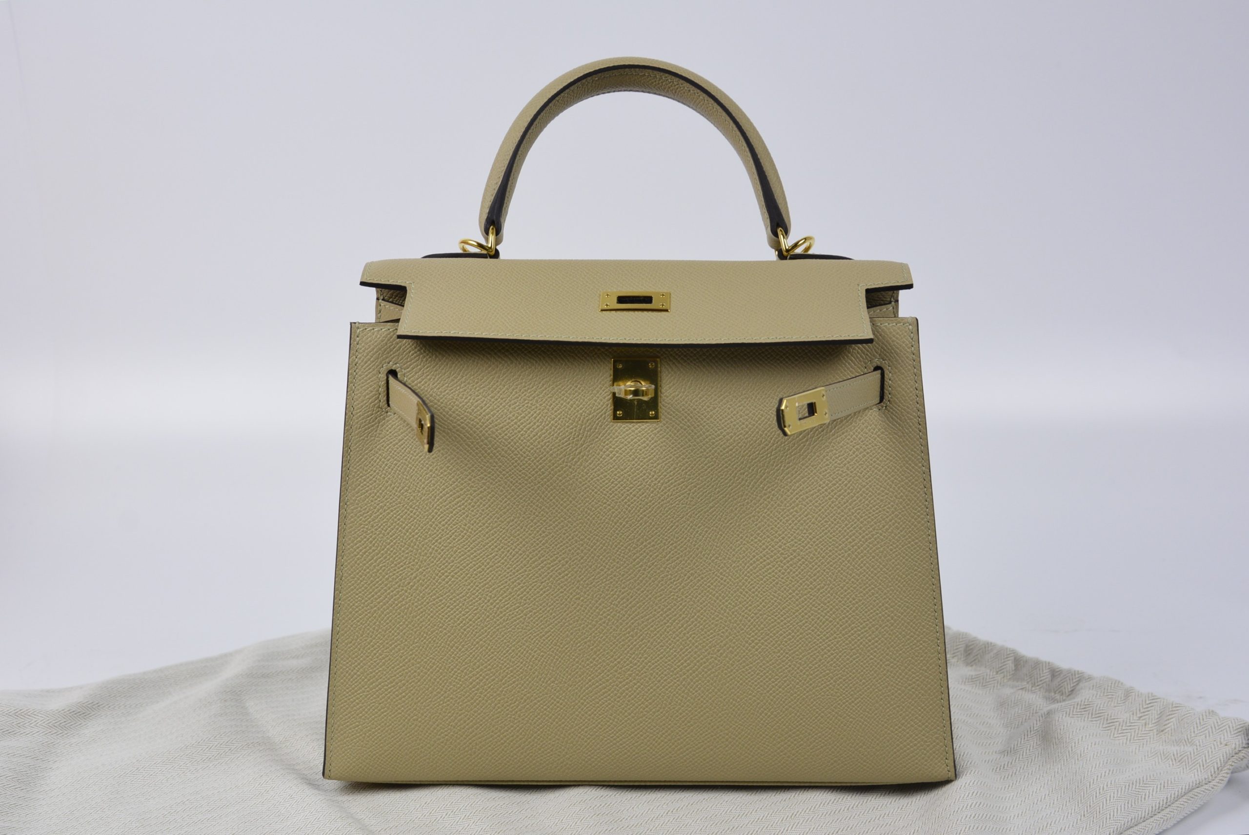 Hermes Kelly 25, Trench Color, Epsom Leather, Ghw, New with Invoice and All.