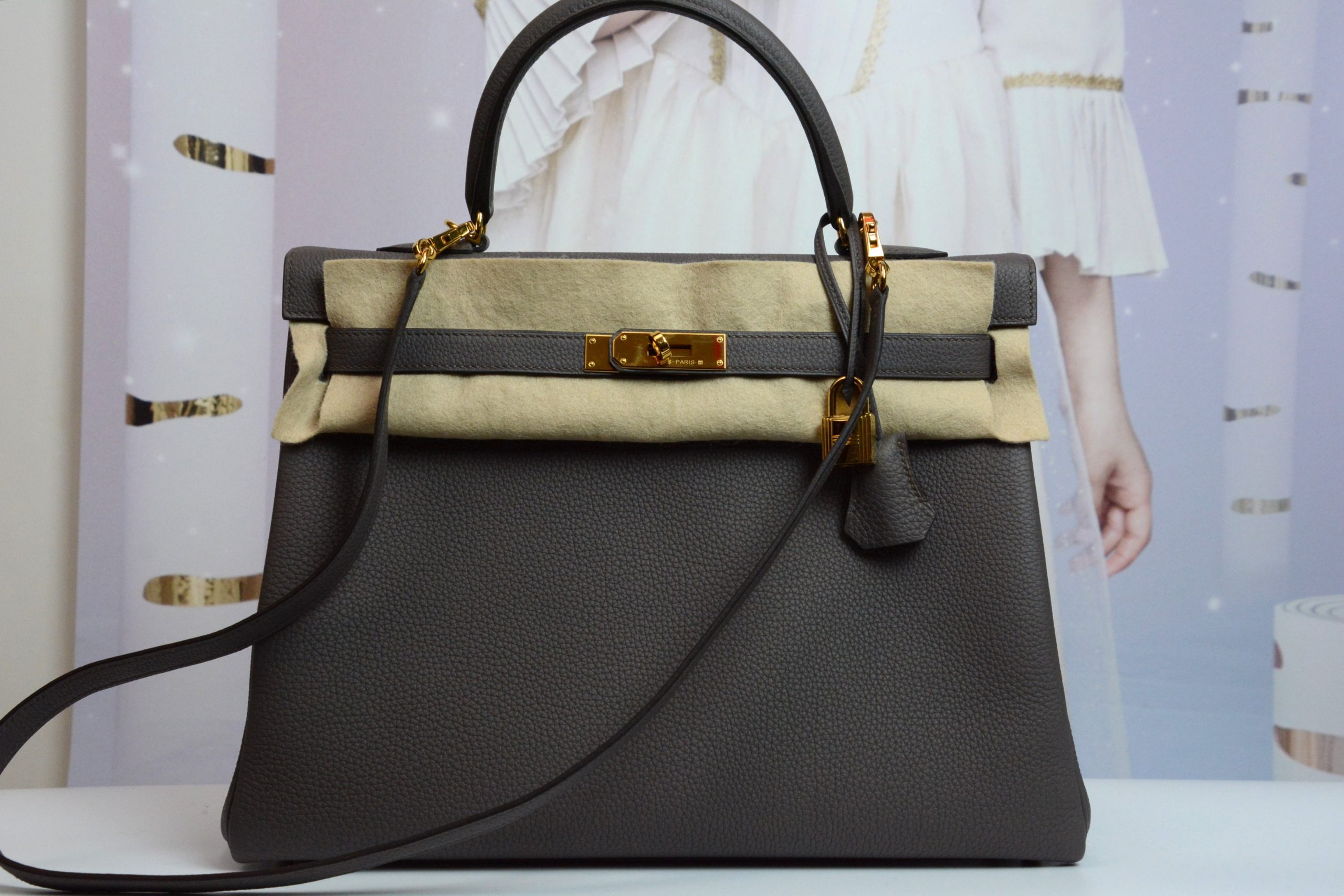 Hermes Kelly 35,Togo Leather,Etain Color,Ghw,X Stamp,Like New ,Used Twice
