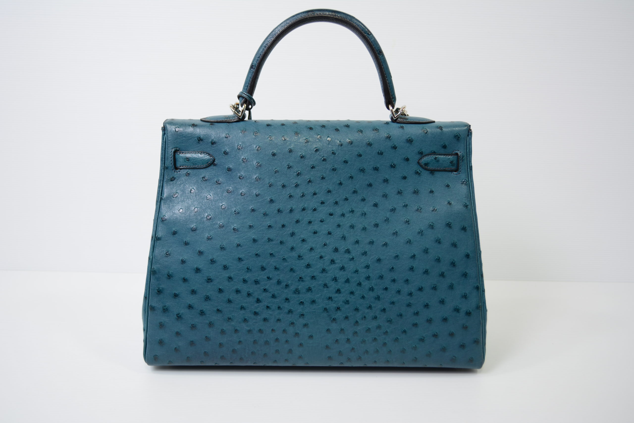 Hermes Kelly 35 Austriche,Bleu,Phw,Letter H,Excellent Condition