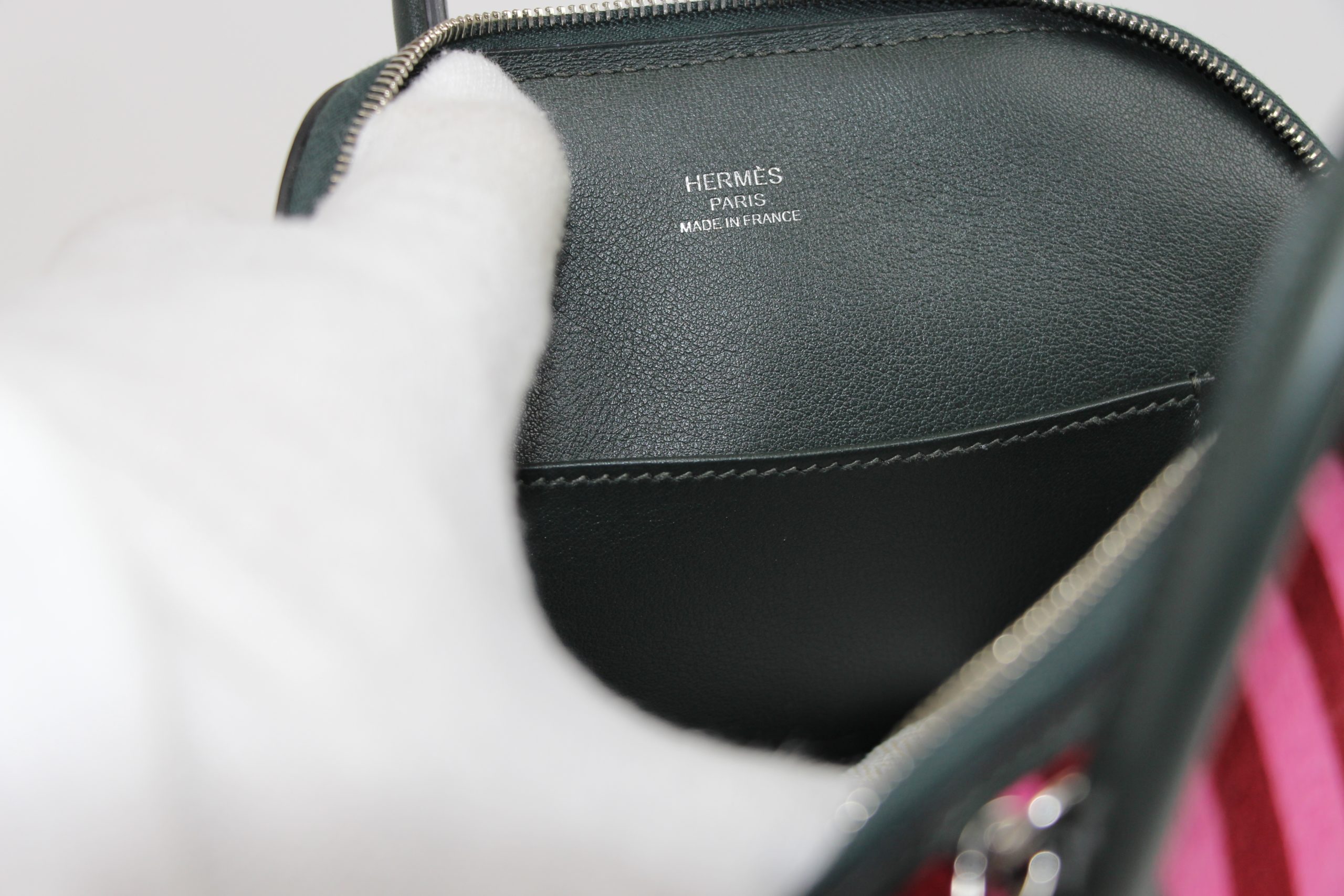 Hermes Bolide Mini Handtasche, Swift Kalbsleder Stickerei Dunkelgrün / Gelb / Dunkelgrün Abnehmbarer Schultergurt Palladium Hardware, Limited Edition, Neu mit Rechnung und Alle Verpackungen: Staubbeutel, Originalverpackung, Karte oder Echtheitszertifikat