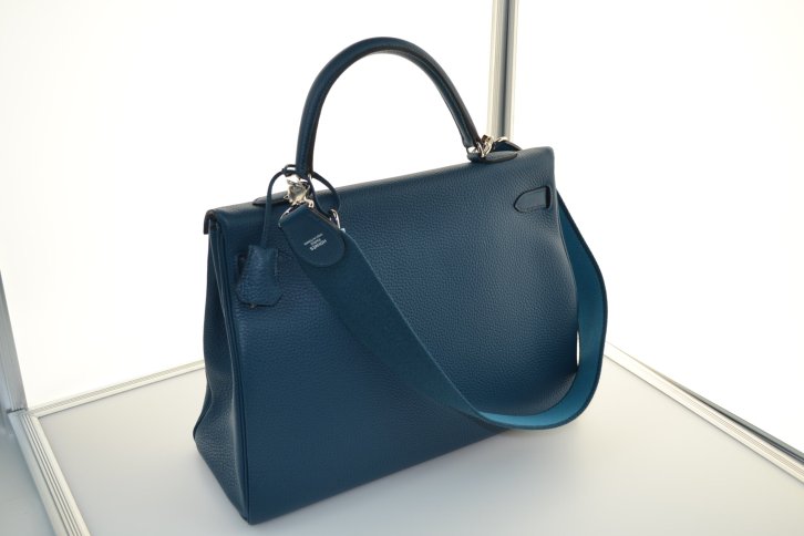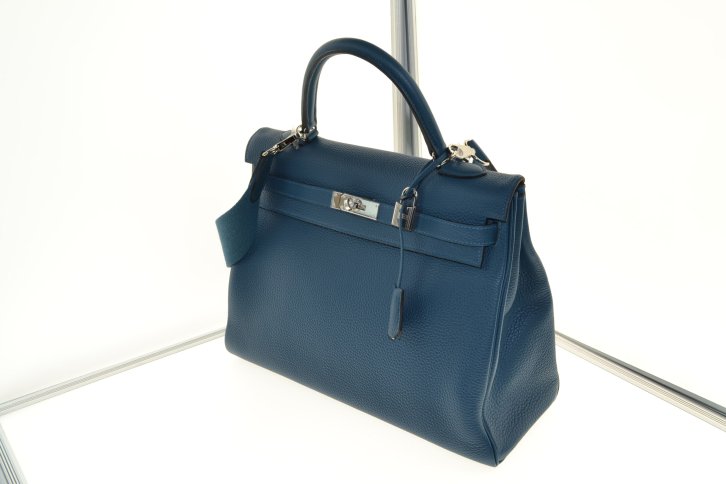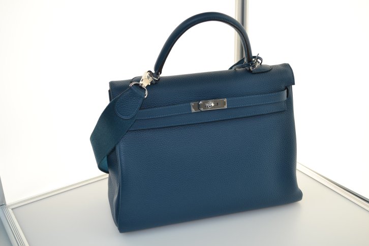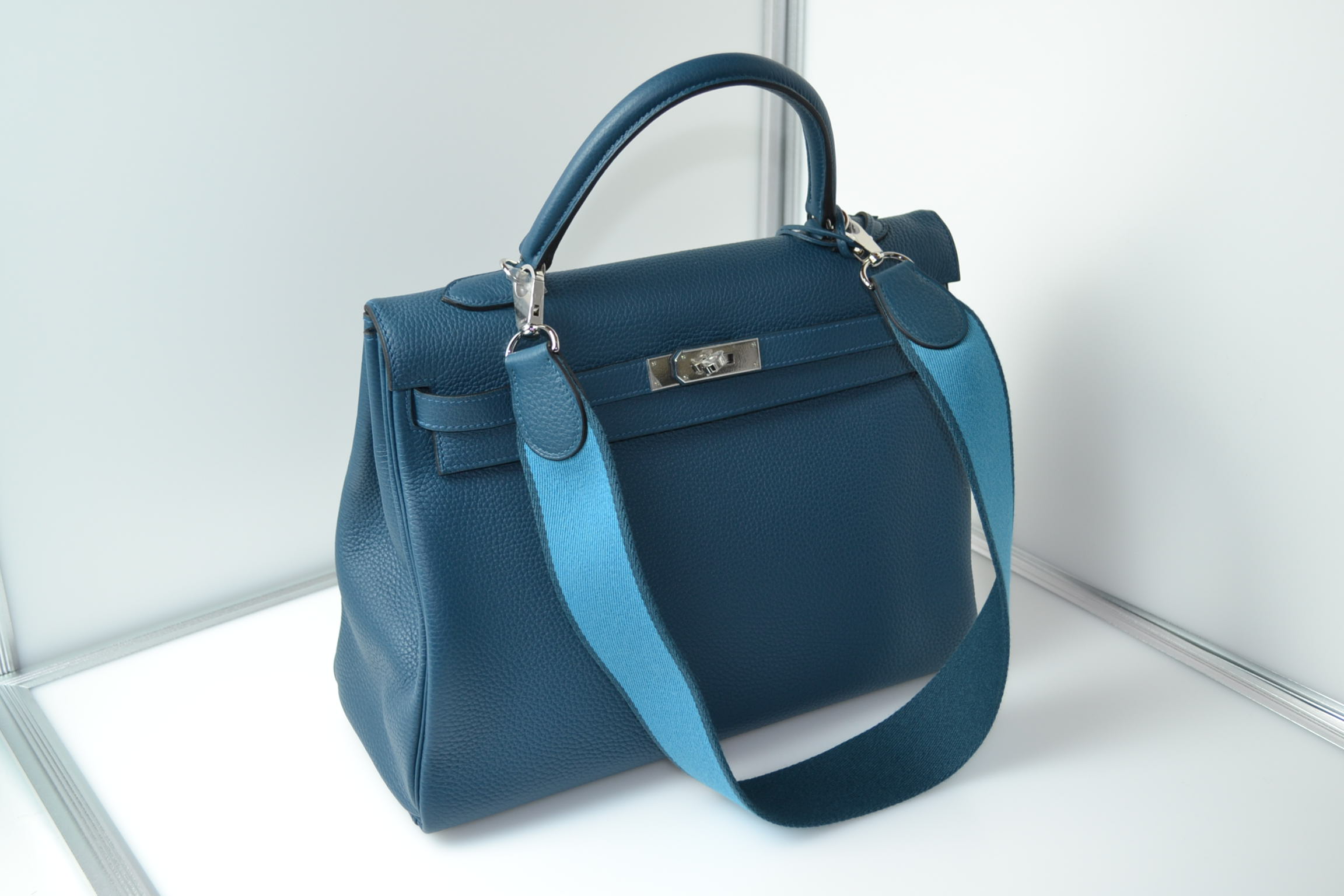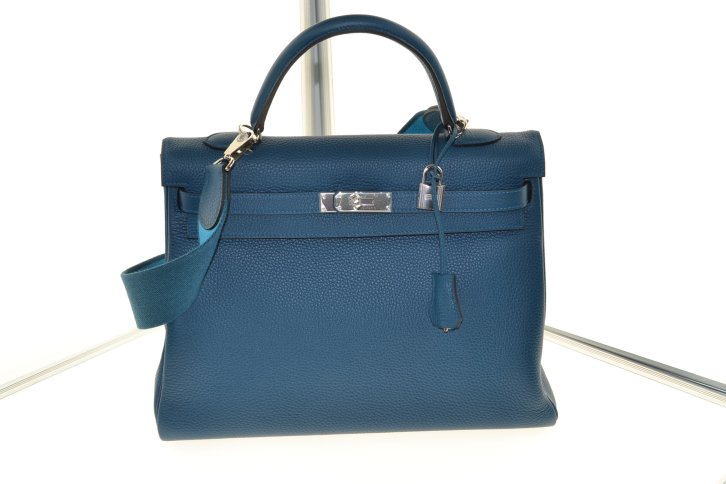 Kelly 35 amazone, Taurillon Clemence leather ,colvert/turquoise-colvert colour,palladium hardware, excellent condition
